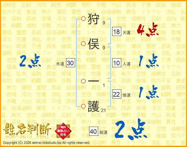 狩俣一護さんの総運は40画の2点!