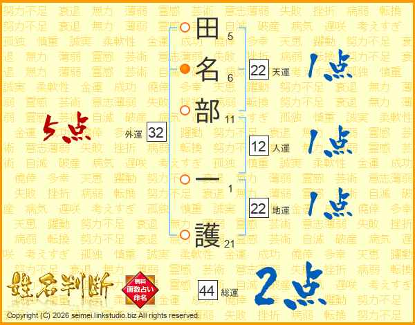 田名部一護さんの地運は22画の1点!