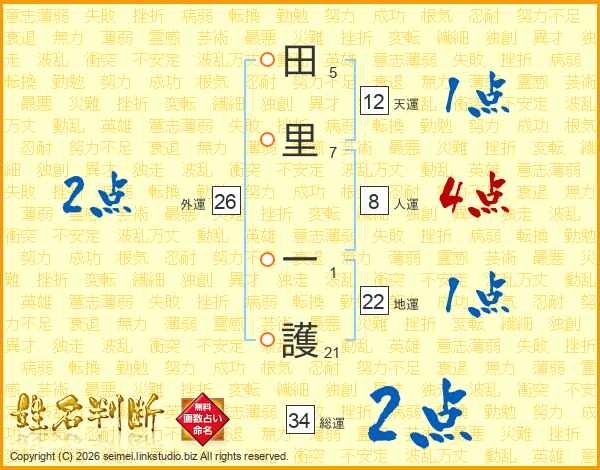 田里一護さんの総運は34画の2点!