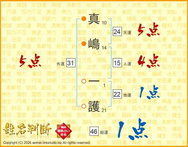 真嶋一護さんの総運は46画の1点!