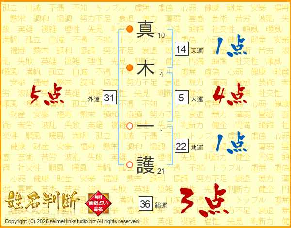 真木一護さんの天運は14画の1点!