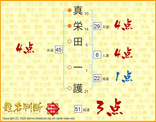 真(10画)栄(14画)田(5画) 一(1画)護(21画)