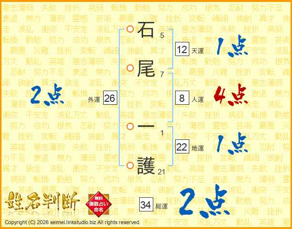 石尾一護さんの外運は26画の2点!