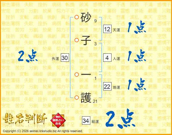 砂子一護さんの総運は34画の2点!