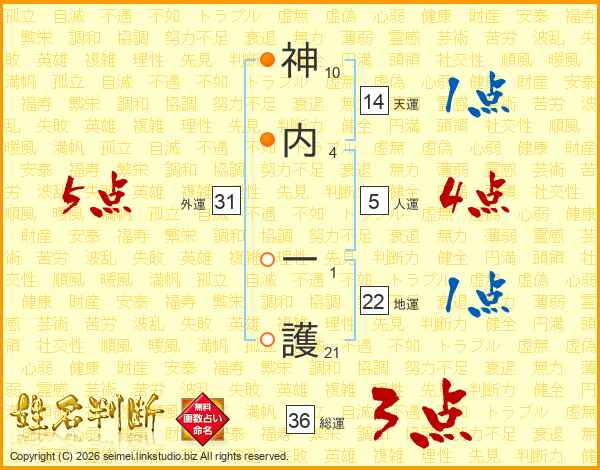 神内一護さんの外運は31画の5点!