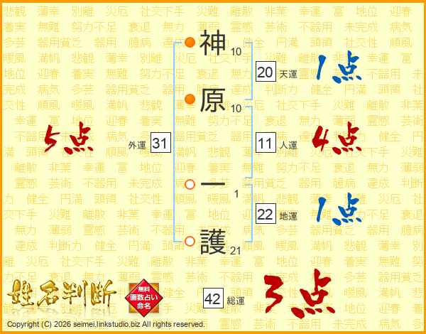 神原一護さんの外運は31画の5点!