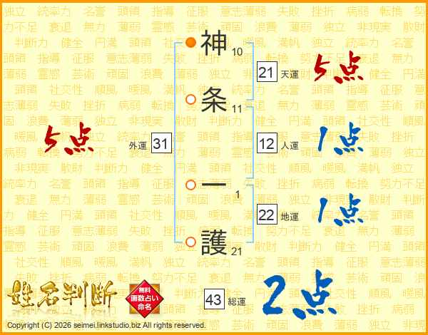 神条一護さんの天運は21画の5点!