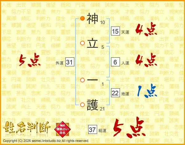 神立一護さんの総運は37画の5点!