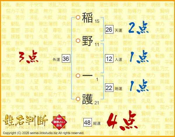 稲野一護さんの総運は48画の4点!