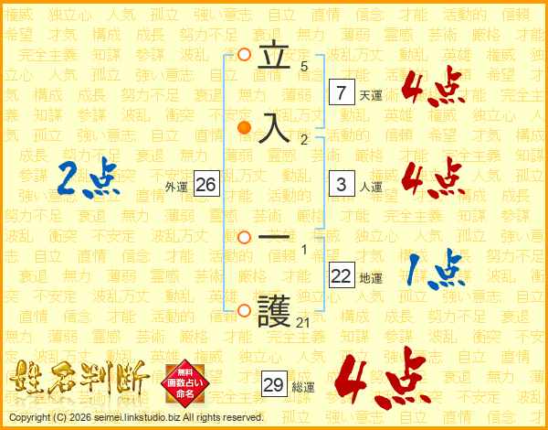 立入一護さんの総運は29画の4点!