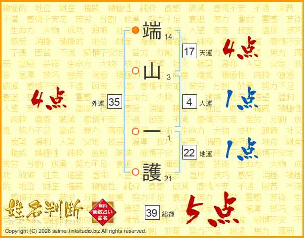 端山一護さんの外運は35画の4点!