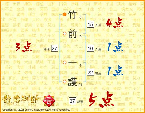 竹前一護さんの総運は37画の5点!