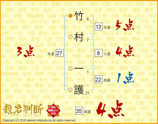 竹村一護さんの総運は35画の4点!