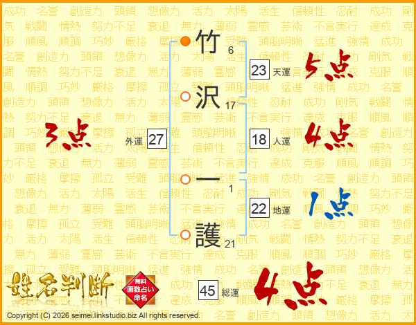 竹沢一護さんの総運は45画の4点!