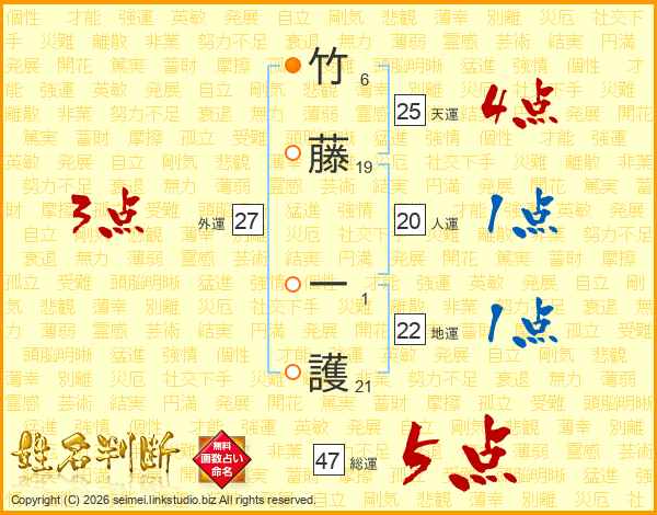 竹藤一護さんの総運は47画の5点!