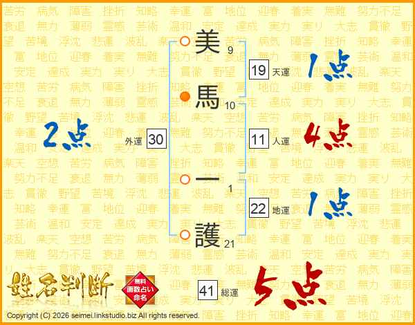 美馬一護さんの総運は41画の5点!