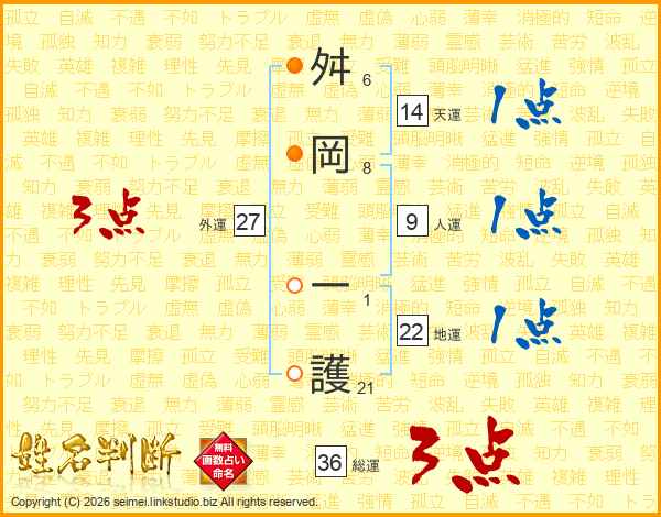 舛岡一護さんの総運は36画の3点!