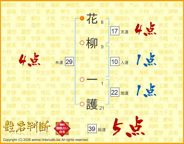 花柳一護さんの総運は39画の5点!