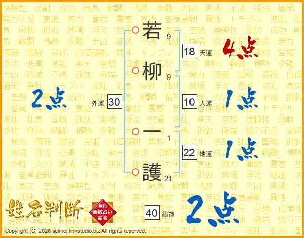 若柳一護さんの総運は40画の2点!
