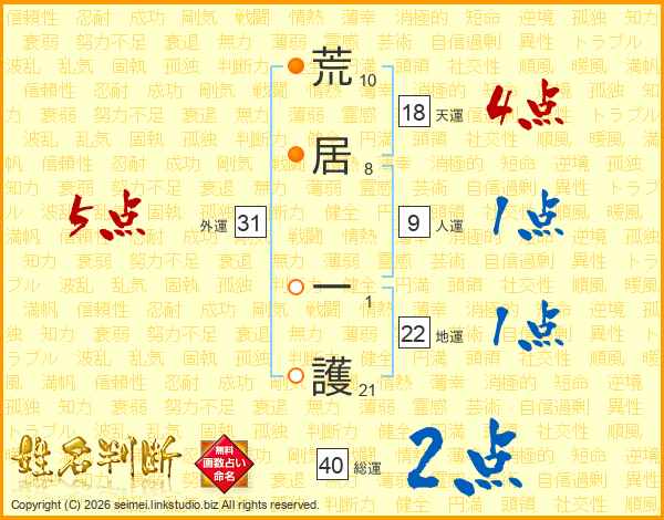 荒居一護さんの地運は22画の1点!