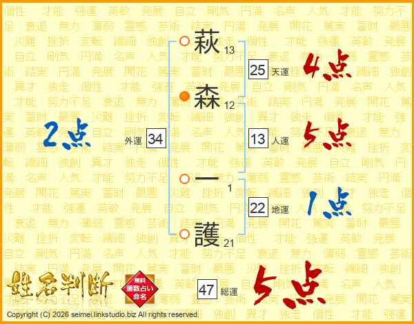 萩森一護さんの天運は25画の4点!