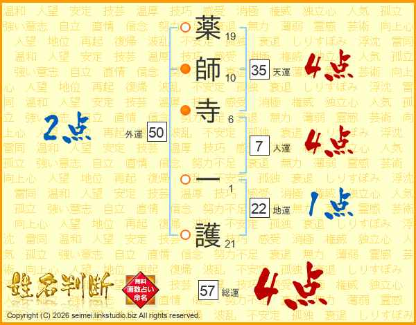 薬師寺一護さんの総運は57画の4点!