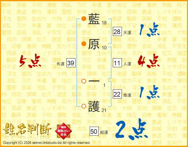 藍原一護さんの総運は50画の2点!