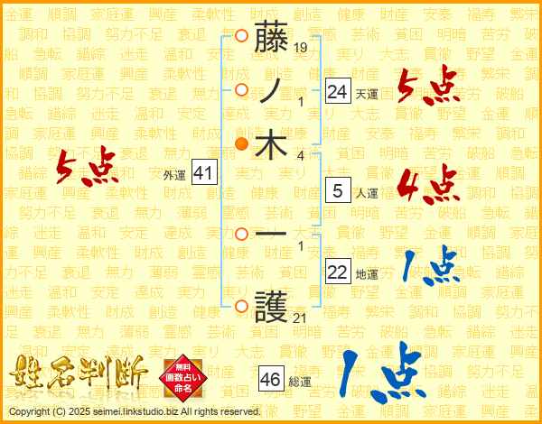 藤(19画)ノ(1画)木(4画) 一(1画)護(21画)