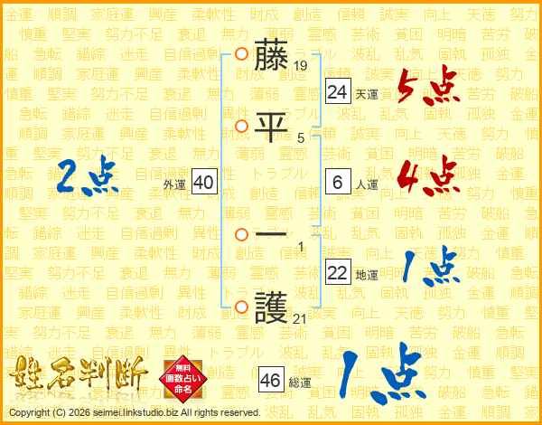 藤平一護さんの総運は46画の1点!