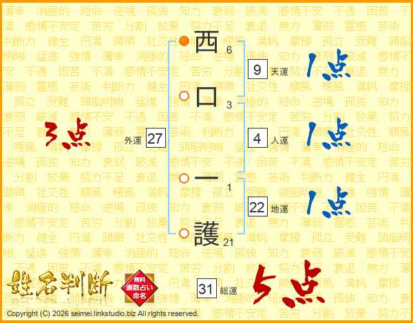 西口一護さんの総運は31画の5点!