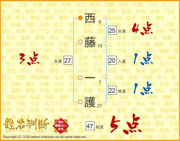 西藤一護さんの総運は47画の5点!