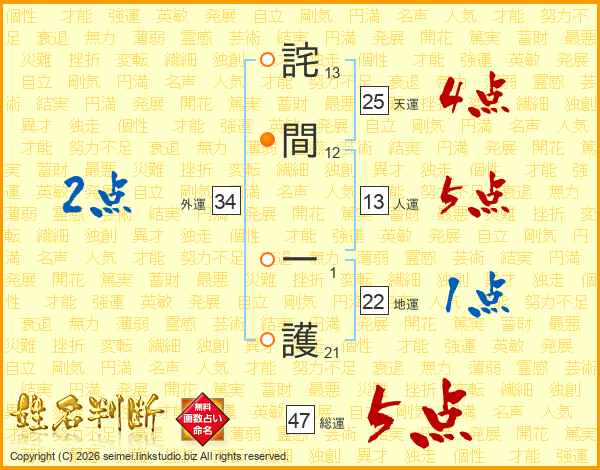 詫間一護さんの天運は25画の4点!