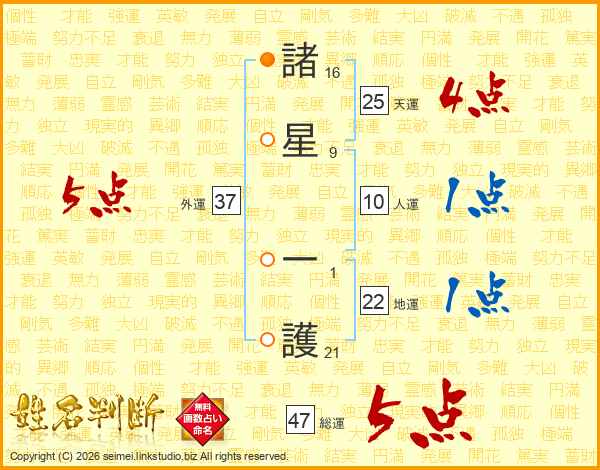 諸星一護さんの外運は37画の5点!
