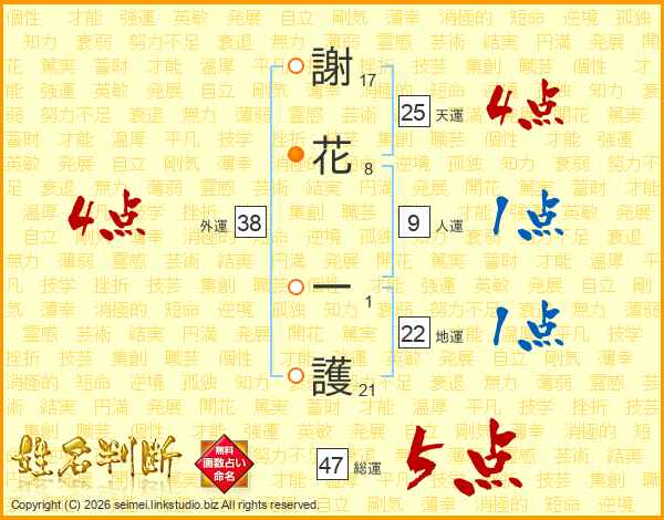 謝花一護さんの天運は25画の4点!