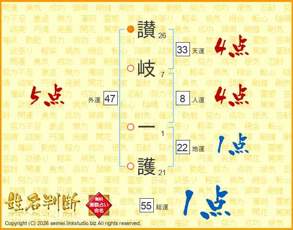 讃岐一護さんの天運は33画の4点!