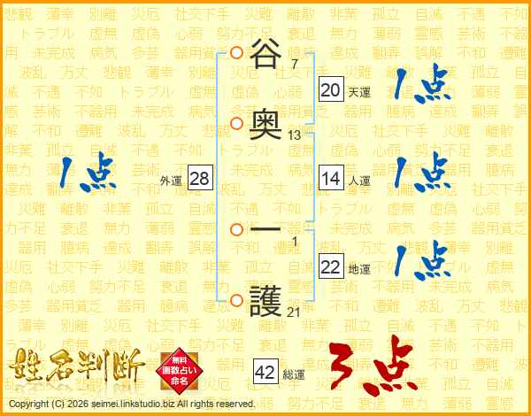谷奥一護さんの地運は22画の1点!