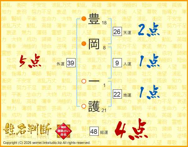 豊岡一護さんの外運は39画の5点!