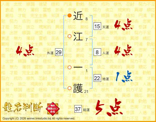 近江一護さんの外運は29画の4点!