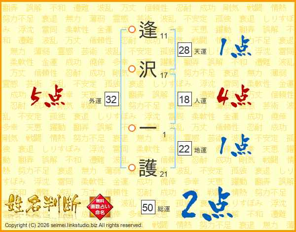 逢沢一護さんの総運は50画の2点!