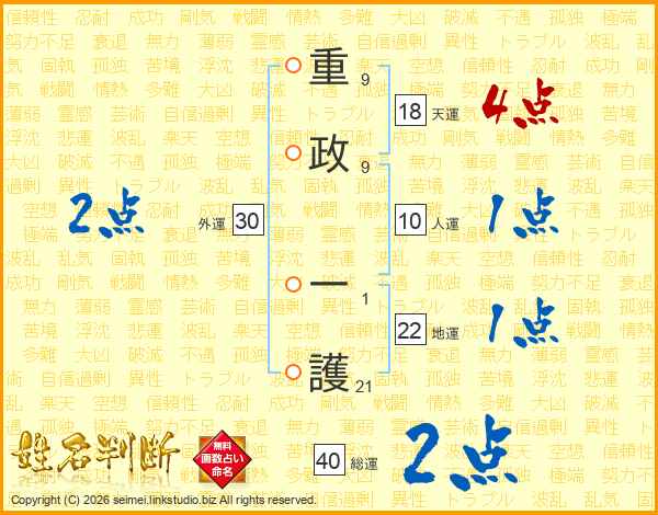 重政一護さんの総運は40画の2点!