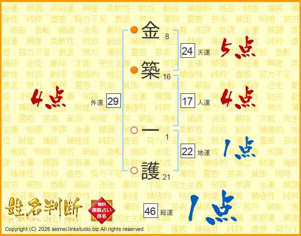 金築一護さんの総運は46画の1点!