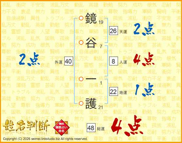 鏡(19画)谷(7画) 一(1画)護(21画)
