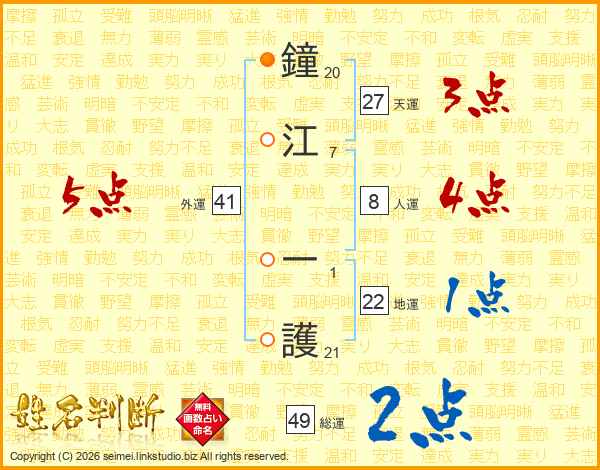 鐘江一護さんの外運は41画の5点!
