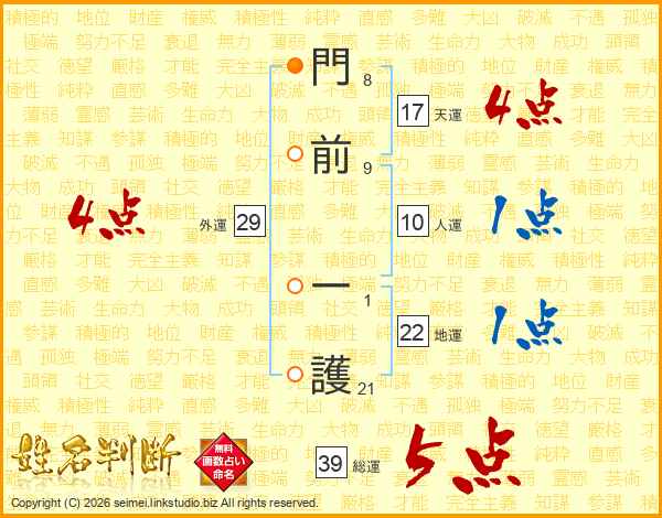 門前一護さんの総運は39画の5点!
