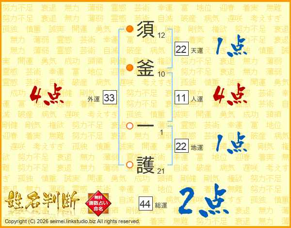 須釜一護さんの総運は44画の2点!
