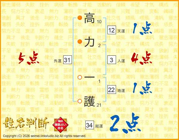 高力一護さんの外運は31画の5点!
