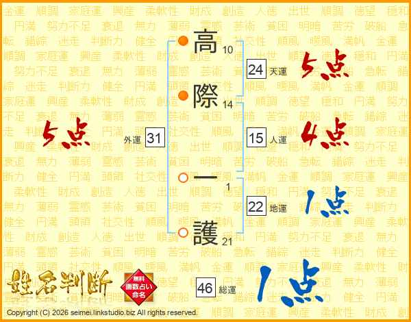 高際一護さんの総運は46画の1点!
