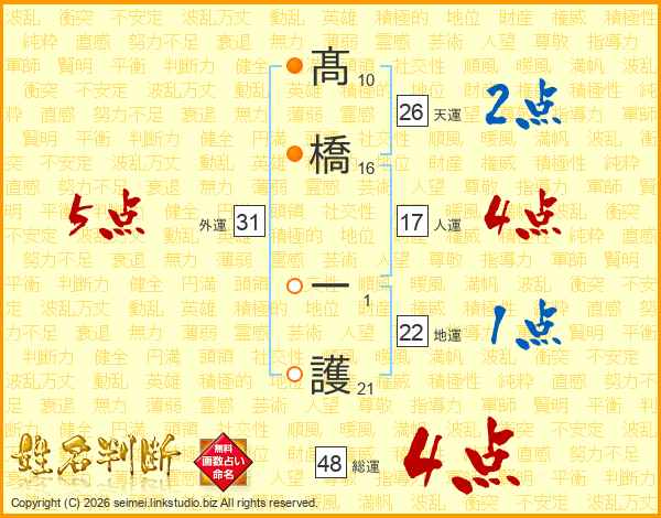 髙橋一護さんの総運は48画の4点!