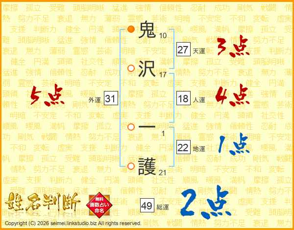 鬼沢一護さんの総運は49画の2点!