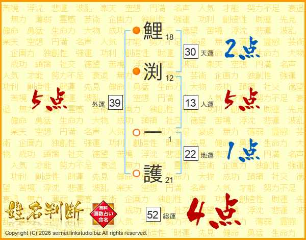 鯉(18画)渕(12画) 一(1画)護(21画)